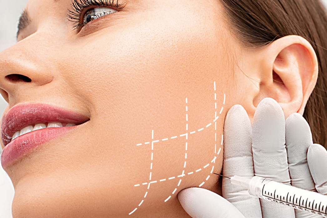 Injectable filler Areas include: cheekbones, nose, forehead, temples, lips, chin, face oval, eyes. Its aim is to improve the natural lines and features of the face and to restore symmetry and a refreshed look. It could also be combined with threading.